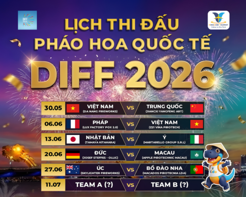 Lễ hội pháo hoa quốc tế Đà Nẵng – DIFF 2026 với chủ đề ” Đà Nẵng – những chân trời kết nối (Da Nang – United Horizons) ” sẽ diễn ra...