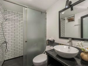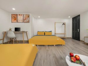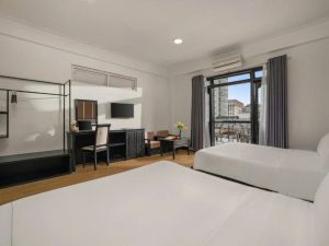 Phòng nghỉ hiện đại, thiết kế phong cách boutique, có điều hòa, phòng tắm riêng và cửa sổ thoáng mát.