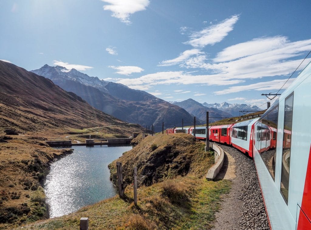 Hành trình dài khoảng 291 cây cầu và 91 đường hầm, với điểm cao nhất là đèo Oberalp ở độ cao 2.033 mét. Mỗi tuyến đoạn đều mở ra một khung cảnh mới: thung lũng sông Rhône xanh ngọc, những ngôi làng gỗ ấm cúng, những dãy núi tuyết bạc đầu và những cánh đồng hoa rực rỡ trải dài đến tận chân trời. Tốc độ trung bình chỉ khoảng 38 km/h, đủ để bạn vừa ngắm vừa chụp ảnh mà không sợ bỏ lỡ.