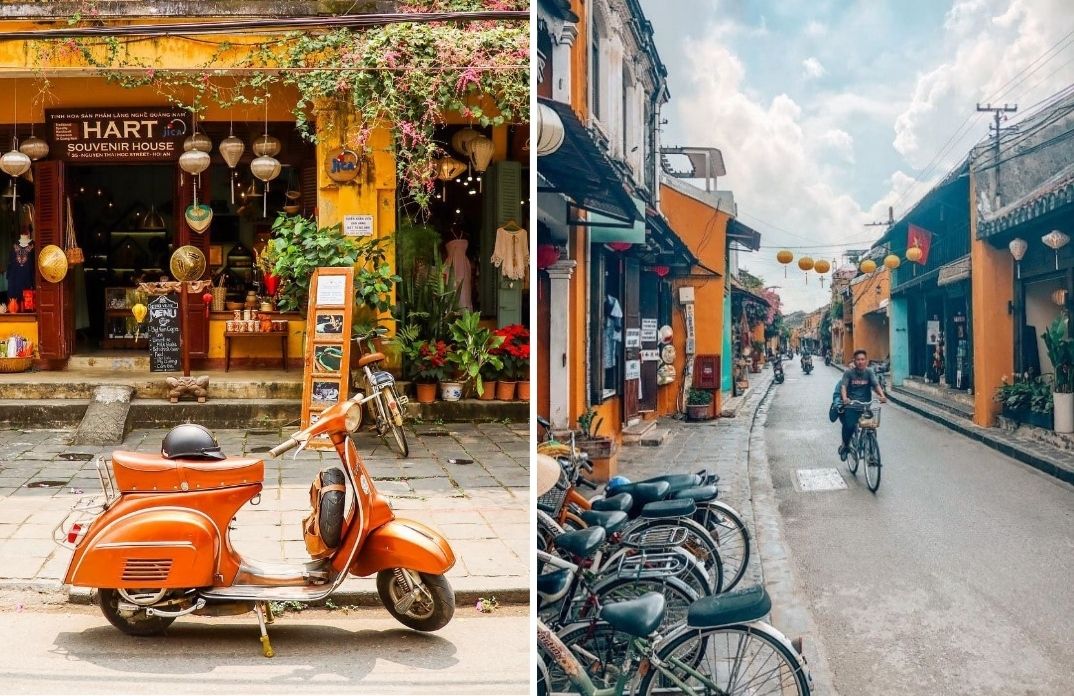 Về phương tiện di chuyển trong Hội An, hãy thuê một chiếc xe đạp cổ điển, thong thả đạp qua từng ngõ nhỏ, tận hưởng gió mát và cảnh vật bình dị. Hoặc bạn có thể chọn xe máy nếu muốn trải nghiệm những vùng ngoại ô, các làng nghề truyền thống và bãi biển hoang sơ gần đó.