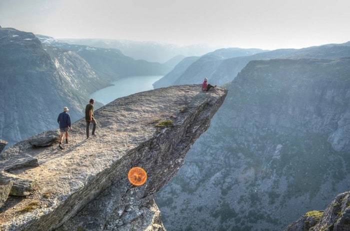 Sau nhiều giờ đồng hồ băng qua địa hình khắc nghiệt, khoảnh khắc bạn đặt chân lên mỏm đá Trolltunga là phần thưởng xứng đáng. Đứng giữa không gian mênh mông, trước mặt là hồ nước xanh thẳm, phía xa là những dãy núi trùng điệp phủ tuyết trắng, bạn sẽ cảm nhận rõ sự nhỏ bé của con người trước thiên nhiên hùng vĩ.